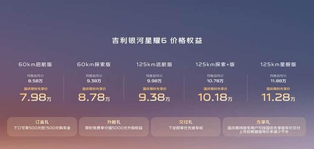 更值得关注的是,凡在预售期下订吉利银河星耀6的用户,均可享500元抵1500元购车金、限时免费享价值5000元配置升级、优先提车权等丰厚权益。对于想省着钱过日子的年轻人来说,这样的省心之选实在难拒绝。